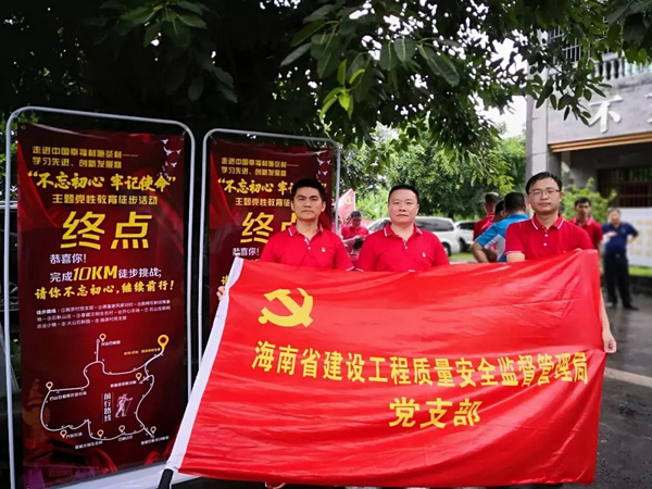 7月1日上午,由海南省建设工程质量安全监督管理局、??谑薪ㄉ韫こ讨柿堪踩喽秸尽⒑D鲜〗ㄉ韫こ讨柿堪踩觳庑崃戏⑵鸬淖呓泄腋4迨┎璐濉跋冉?、创新发展暨“不忘初心,牢记使命”主题党性教育徒步活动在石山镇施茶村圆满举行。本次活动地点为石山镇施茶村,海南省建设工程质量安全监督管理局局长丁飞、党支部书记陈雷、副局长刘长征、??谑薪ㄉ韫こ讨柿堪踩喽秸菊境し久?、副站长吴坤顺、海南省建设工程质量安全检测协会会长曹建红、秘书长纪扣宝及来自各单位的160余位党员共同参加了此次10KM徒步活动。作为海南省建设工程质量安全检测协会的会员单位,海南万泰张小龙总经理、党支部书记张小云及万泰党支部党员队伍一同参加了本次活动。