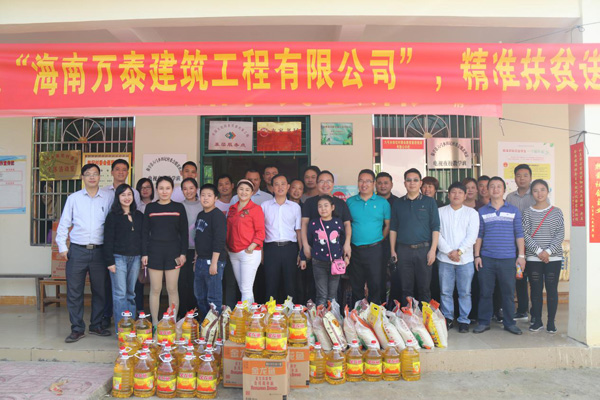 为积极响应国家“精准扶贫”政策,扛起企业责任,以实际行动回馈社会,同时,大力弘扬扶贫济困的传统美德,2017年12月9日,海南万泰建筑工程有限公司总经理张小龙带领公司各级领导及员工深入保亭黎族苗族自治县六弓乡田圮村,开展扶贫活动。