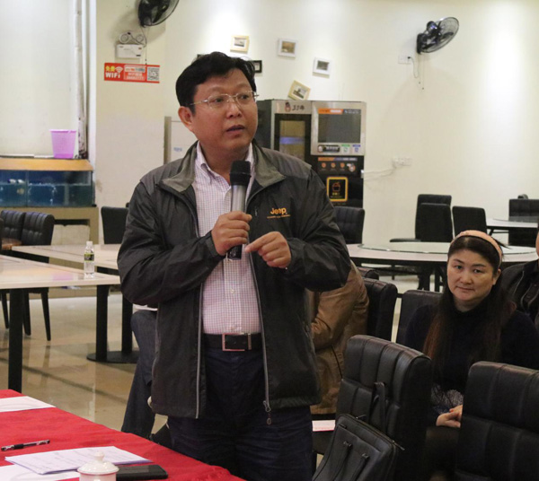 结合企业发展实际,海南万泰公司总经理张小龙从“一个目标”、“四个不变”、“三个步骤”、“四个意识”、“五位一体”五个方面进一步阐述了如何将十九大精神融入到企业发展当中,让十九大精神在万泰落地生根、开花结果。张总强调,万泰的总目标是“让所有员工共同过上体面的生活”。以这个目标为出发点,要始终保持“面对强有力的竞争力不变”、“艰苦耐劳的精神不变”、“坚持职业道德底线不变”和“对公司的忠诚不变”四个不变;谋划未来发展三个步骤,即2018年成立党支部、2021年取得特级企业资质、2021年争创建筑工程鲁班奖;恪守“政治意识、大局意识、核心意识、看齐意识”四个意识,一是举办十九大精神宣讲会,积极传播正能量,二是做有担当的万泰人,始终把公司利益摆在首位,三是以公司发展为核心,团结奋进,四是向公司看齐,保持对公司的信任;最后,张总还结合“创新、协调、绿色、开放、共享”的五位一体发展观,深刻阐释了“合股·沟通·包容·共赢”作为企业新的发展目标,对未来公司发展战略的重要意义。