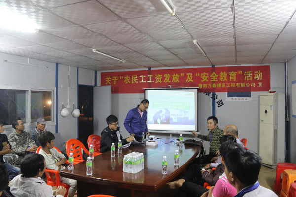 长期以来,海南万泰都把农民工利益摆在重要位置。不断通过丰富的形式积极开展相关培训教育活动。现今,鉴于年关将至,工资能否正常发放关系到农民工的切身利益,为了进一步规范各项目农民工工资发放手续,维护农民工合法权益,确保农民工工资能够正常发放,同时,为强化年底工地安全管理,进一步增强农民工安全意识,海南万泰计划在年前对各项目实地开展相关培训活动,切实做好年底相关准备工作。