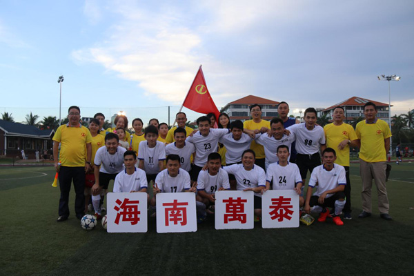 本次赞助赛,是海南万泰继去年之后的又一次赞助赛,不仅有利于丰富员工的业余文化生活,提升企业的知名度,更是万泰弘扬企业文化的见证,充分体现出了海南万泰在追求企业发展的同时,将企业文化作为当中重要的组成部分。作为一个正在快速发展中的民营企业,长期以来,公司各级领导都尤为重视企业文化的建设和发展,因此本次赞助赛,公司号召并组织员工积极参与加油助威队伍。球场上队员们挥汗如雨,全情投入比赛,看台上助威队伍高举万泰旗帜,呐喊加油。正如绿茵场上不畏艰难,勇往直前的拼搏精神,这也是万泰公司对员工的殷切期望。