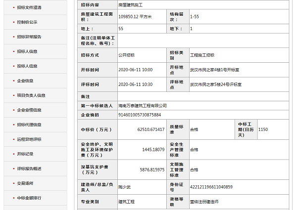 海南万泰公司成功中标武汉6.25亿元项目和???.75亿元项目