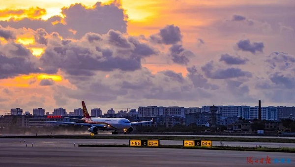 美兰机场二期扩建项目成功试飞。??谌毡钦?康登淋 摄