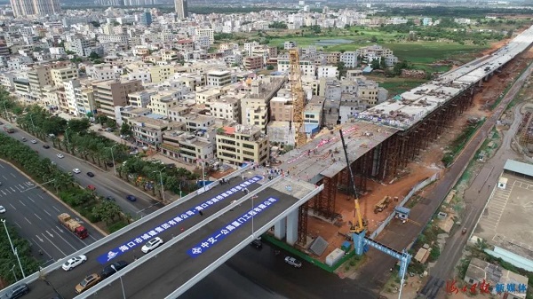 海秀快速路二期项目主线高架桥合龙。??谌毡钦?陈长宇 摄