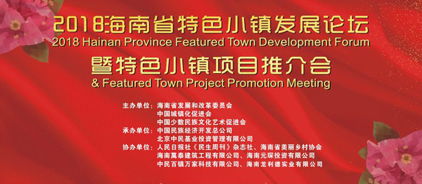 2018年12月2日,为贯彻党中央、国务院关于推进小城镇建设的精神和习近平总书记在庆祝海南建省办经济特区30周年大会上关于“发展乡村旅游,打造一批体现热带风情的精品小镇”的重要讲话精神,促进特色小镇和特色小城镇的建设发展和少数民族文化?;?,落实国家发展改革委先后印发的《关于加快美丽特色?。ǔ牵┱蚪ㄉ璧闹傅家饧贰豆赜诠娣锻平厣≌蚝吞厣〕钦蚪ㄉ璧娜舾梢饧贰豆赜诮⑻厣≌蚝吞厣〕钦蚋咧柿糠⒄够频耐ㄖ返囊?,进一步规范特色小镇建设,推动特色小镇高质量发展,由海南省发展与改革发展委员会、中国城镇化促进会、中国少数民族文化艺术促进会发起主办,由中国民族经济开发总公司、北京中民基业投资管理有限公司承办的2018海南省特色小镇发展论坛暨特色小镇项目推介会,在位于海南??诘闹泄êD希└母锓⒄寡芯吭夯嵋樘晒傩?。