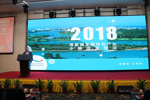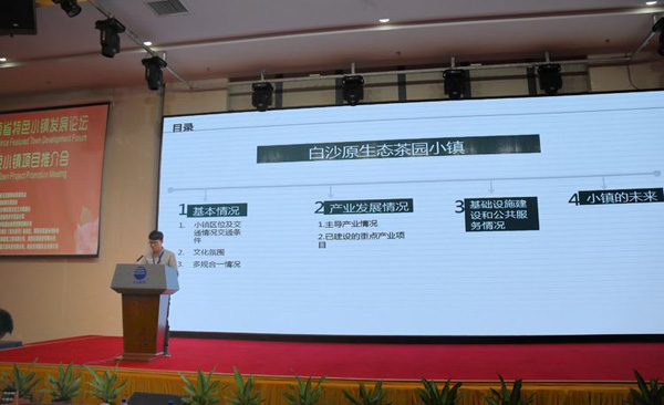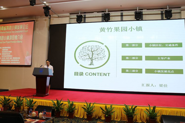 在海南特色产业小镇特别推广环节,??谑行缕抡?、琼海市博鳌镇、澄迈福山小镇、文昌航天小镇龙楼镇、陵水县清水湾游艇小镇、定安县黄竹果园小镇、琼海市会山特色小镇、白沙县生态茶叶小镇、三亚龙海创客小镇为与会嘉宾做出各具特色的精彩推广,共话美好发展图景。