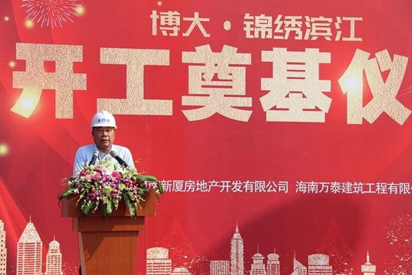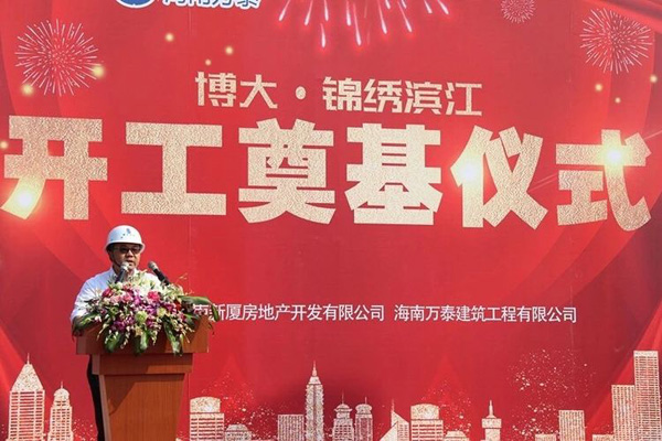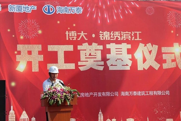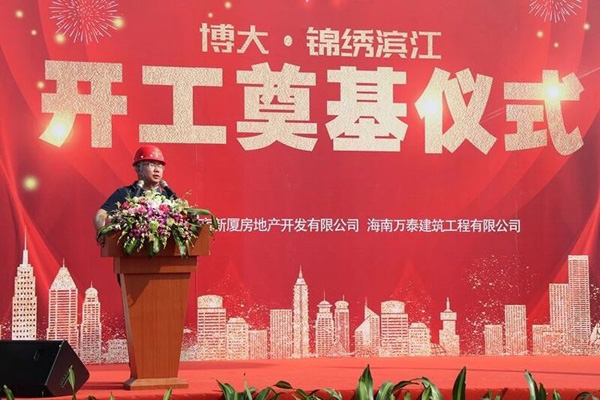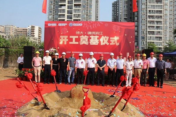 2019年3月6日上午9:58分,博大·锦绣滨江项目举行了盛大的开工奠基仪式,博大润海董事长王志雄,工程副总席艳艳,海南万泰建筑工程有限公司总经理张小龙,博大·锦绣滨江项目负责人罗世军,永明项目管理有限公司郑楚兴,海南建工集团原董事长曹书明等领导,业主单位、承建单位和监理单位工作人员代表参加本次活动。