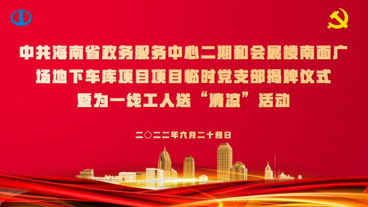 为进一步提高党组织在基层的影响力,增强党组织在项目工地上的凝聚力,贯彻落实“项目建在哪,支部就设在哪”的理念,经海南省住建行业党委的批准,2022年6月24日,万泰公司承建的省政务服务中心二期和会展楼南面广场地下车库项目临时党支部揭牌仪式暨为一线工人送“清凉”活动在项目部现场圆满举办。受海南省住建厅领导的委托,省住建行业党委专职副书记李述朝、省住建厅质安处副处长韩苗、省质安局副书记刘长征莅临现场指导揭牌仪式并参加为一线工人送“清凉”活动。公司党支部书记曹珊珊、常务副总经理颜利、副总经理吴坤芳,项目临时党支部书记吴燕等相关人员参加了本次活动,仪式由公司党支部副书记孟晨主持。