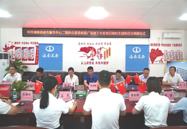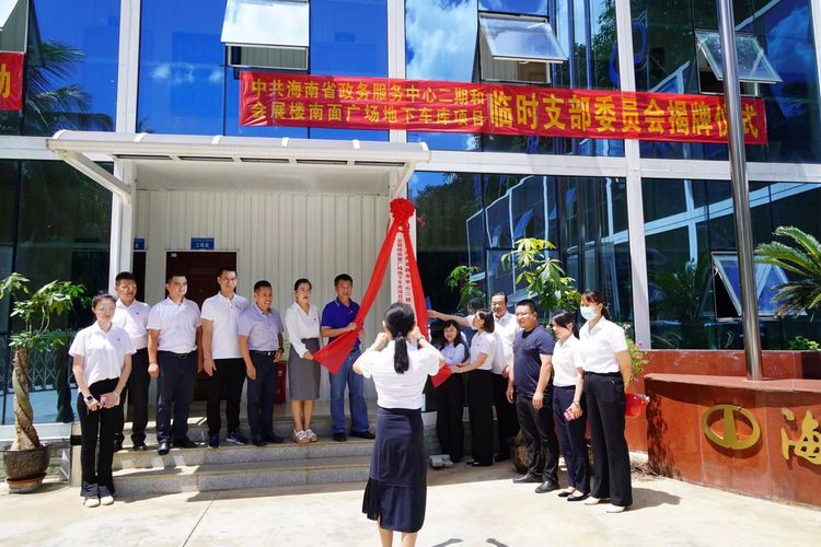 在主持人的指引下,大家移步为省政务服务中心二期和会展楼南面广场地下车库项目临时党支部进行了揭牌,预示着项目党建工作迈上了新台阶,为项目部各项工作的开展奠定了组织基础。