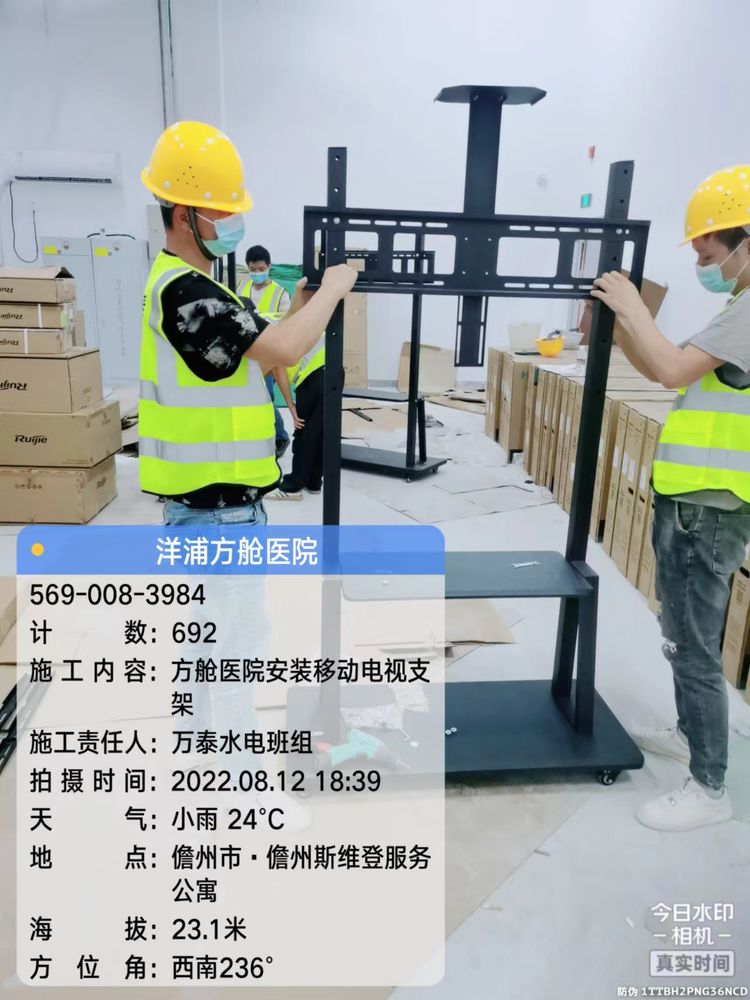 支援队到达现场后,迅速进入“战斗状态”,搬运、开槽、弹线、分线、安装等各道工序快速展开。放眼望去,尽是忙碌的身影。大家步履匆忙,但眼神坚定,脸上汗珠密布,但无心擦拭,每一个人都在和疫情赛跑,和时间赛跑,为生命勠力同心。