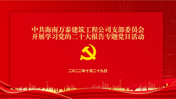 金秋十月,山河锦绣。为深入学习贯彻党的二十大报告,领悟会议精神,坚定理想信念,2022年10月29日,海南万泰公司联合金贸街道商会组织开展学习党的二十大报告专题党日活动。
