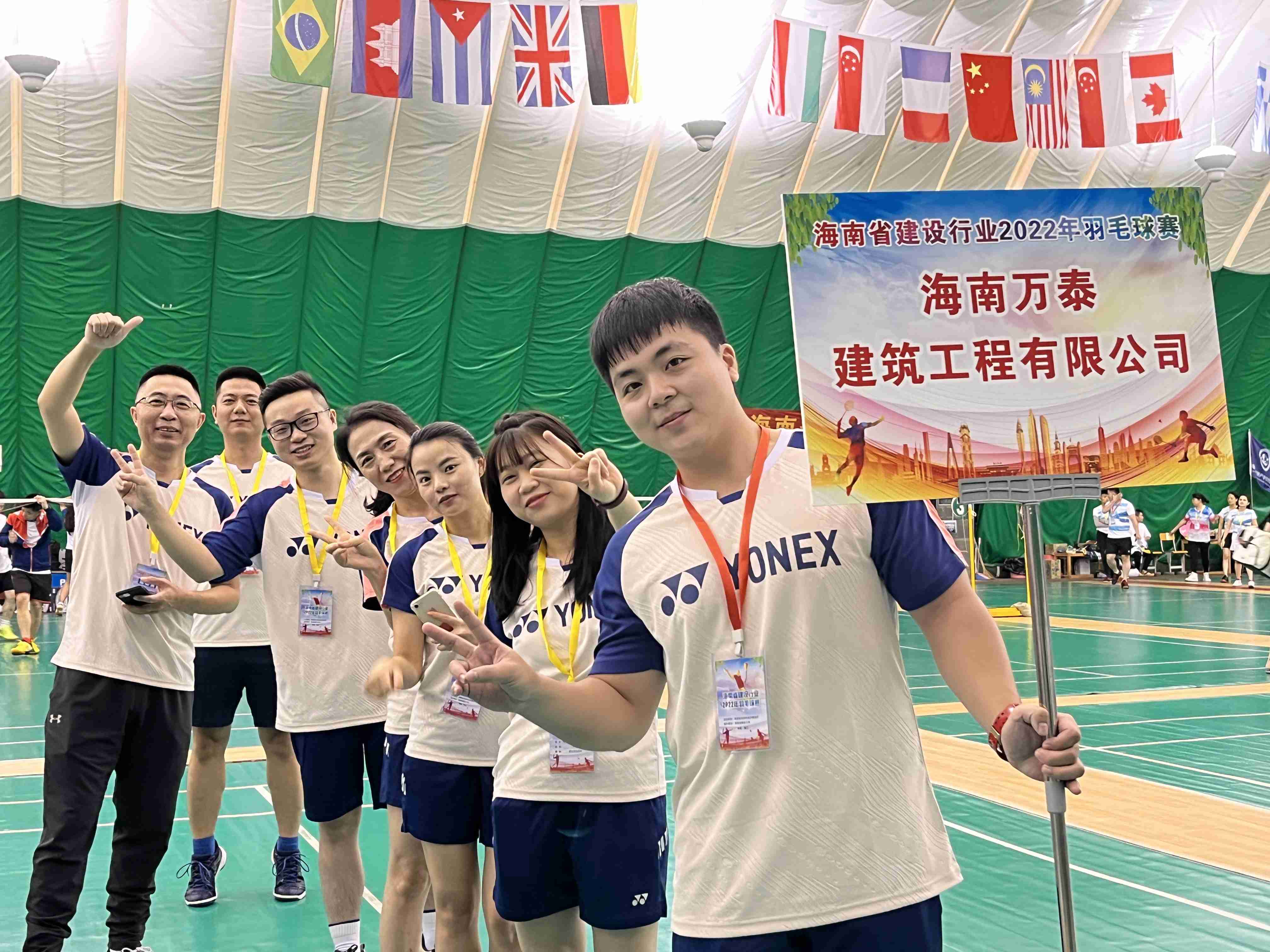 为丰富职工业余文化生活,提高职工身体素质,2022年11月19日至20日,海南万泰公司组织参加了由海南省住建厅主办、海南省建设工会承办的海南省建设行业2022年羽毛球比赛,来自政府部门、企事业单位共29支参赛队伍齐聚一堂,角逐荣誉。万泰公司对本次活动非常重视,派出了由韩文剑、刘峰、张建杰、杨秀娟、吴嫚芳、林慧、张愉勤组成的羽毛球代表队。