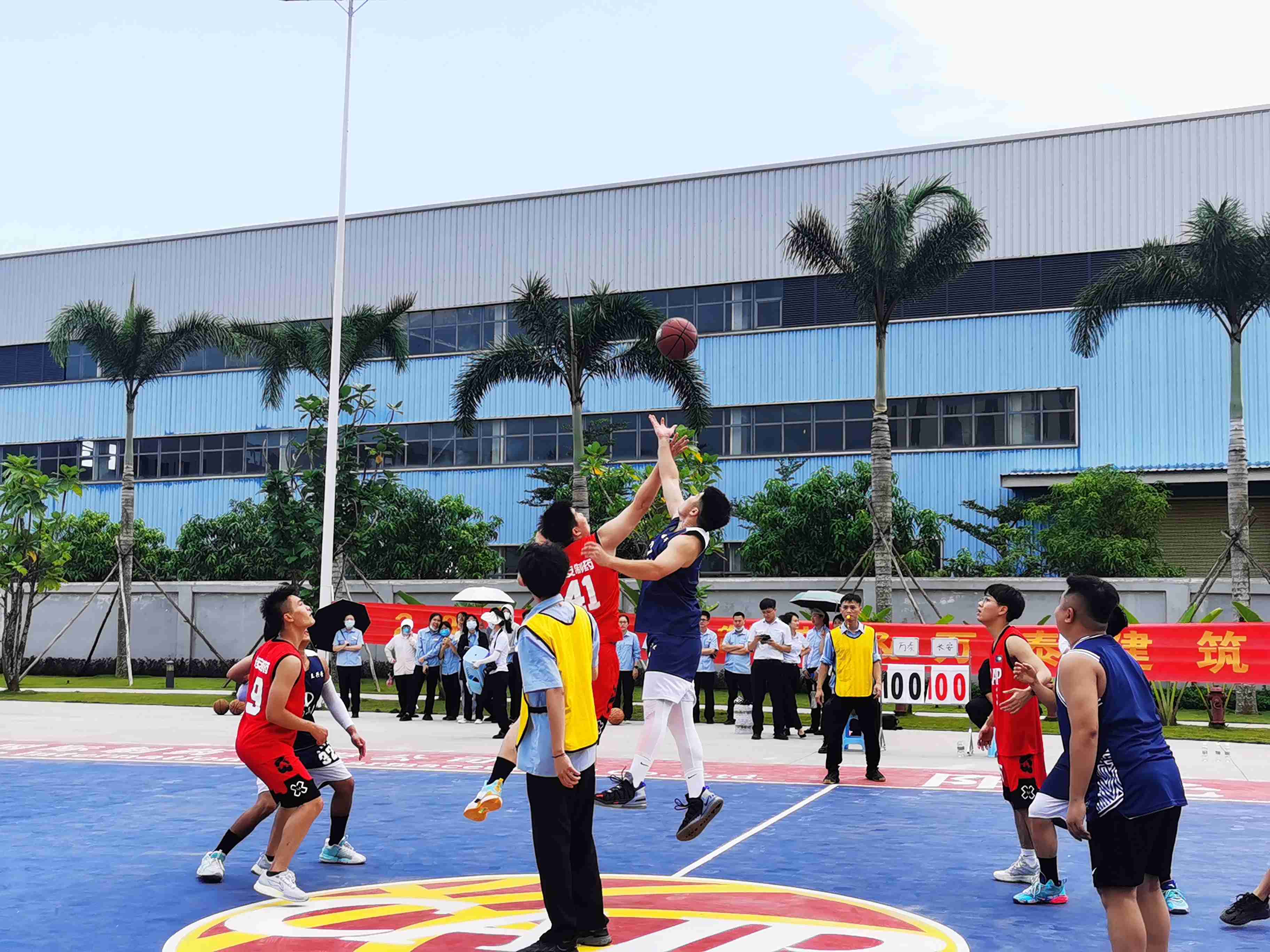 文体活动凝心聚力,篮球大赛点燃激情。为丰富员工业余精神文化生活,树立全民健身,自强不息的理念,2022年11月28日,万泰公司与所承建项目建设方——海南长安国际制药有限公司联合举办篮球友谊赛,双方都组织了优秀代表队参赛。贵州益佰制药股份有限公司副总经理、海南长安国际制药有限公司总经理汪立冬等一行,万泰公司工会主席颜利率队参加本次活动。
