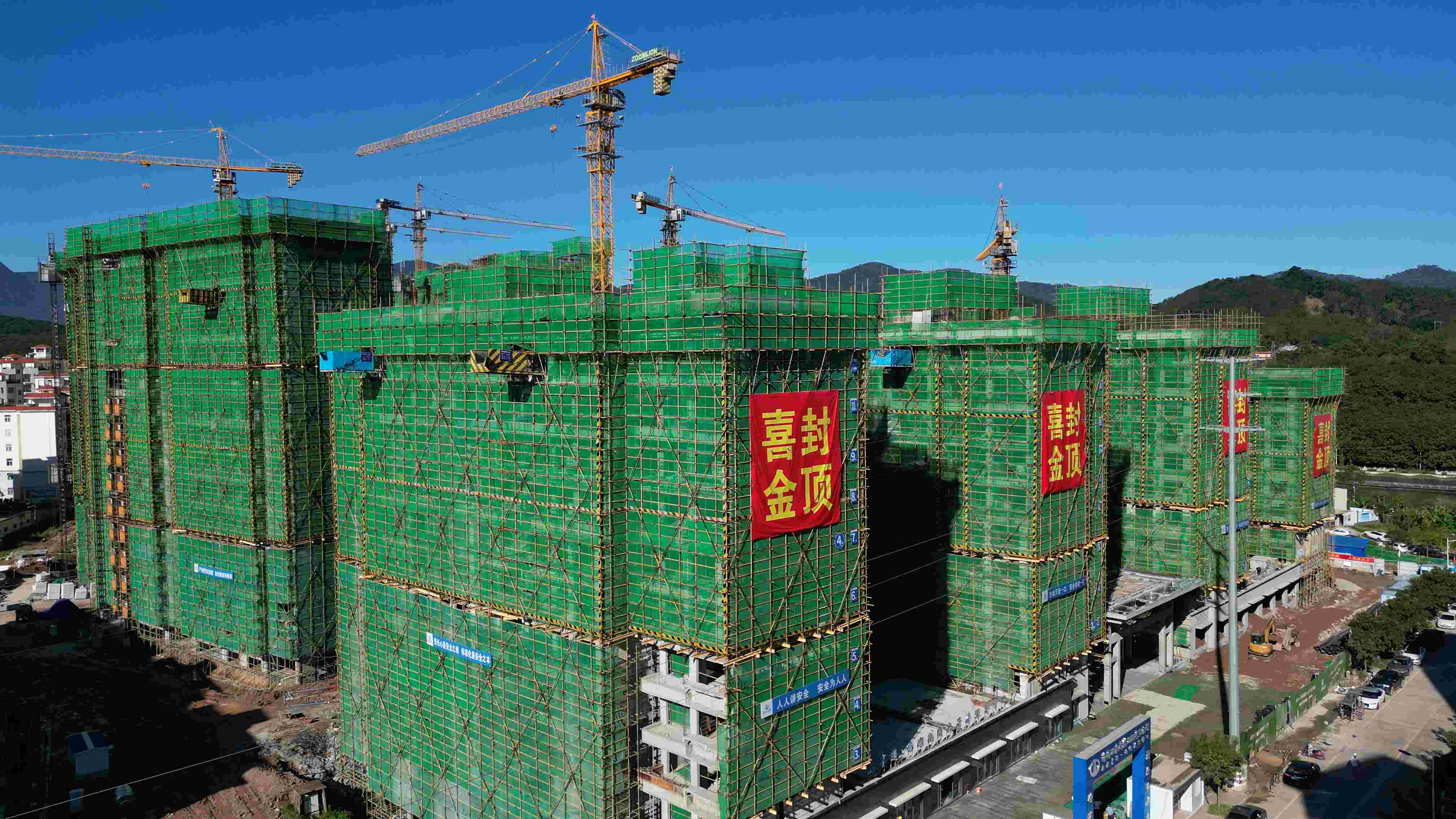 海南万泰承建的白沙亨通·南湖花园项目主体结构喜迎全面封顶