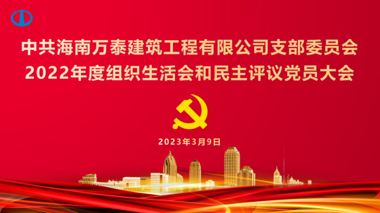 为全面贯彻落实习近平新时代中国特色社会主义思想,深入学习党的二十大、省第八次党代会精神,按照省住建行业党委统一安排部署,2023年3月9日下午,中共海南万泰建筑工程有限公司支部委员会召开了2022年度组织生活会和民主评议党员大会。省住建行业党委委员孙文玺莅临现场指导,万泰党支部全体党员参加本次会议,会议由党支部副书记孟晨同志主持。