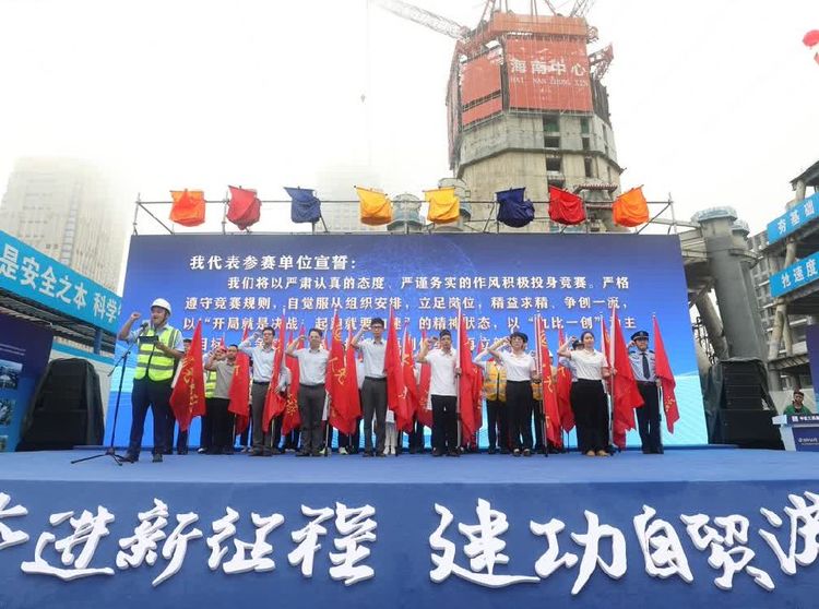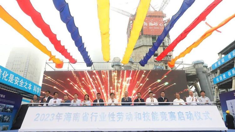 为充分发挥工人阶级主力军作用,积极组织公司职工参与企业发展事业,为海南自贸港建设做贡献,2023年3月30日,由海南省总工会、海南省住房和城乡建设厅、海南省营商环境建设厅、海南省公安厅等单位联合主办,海南省农林水利交通建设工会、海南省建设工会、中建三局集团有限公司承办的“奋进新征程、建功自贸港”2023年海南省行业性劳动和技能竞赛启动仪式在海南中心项目工地全面启动,省总工会主席陆志远、省住建厅副厅长林诗辉等相关单位领导出席活动。