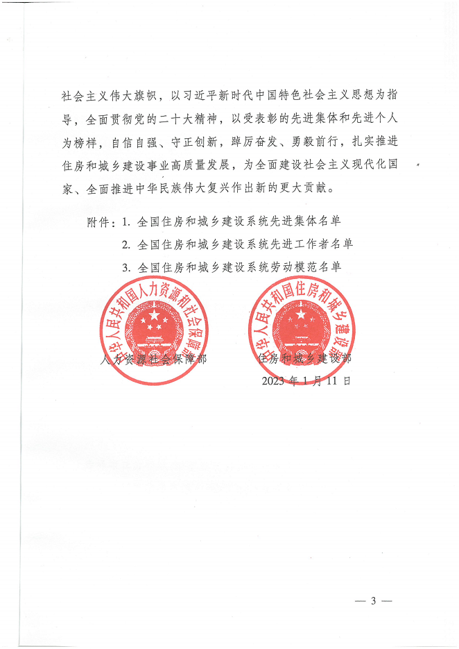 此次通报表扬,是继公司去年年底被中华人民共和国人力资源和社会保障部、中华人民共和国住房和城乡建设部评为“全国住房和城乡建设系统先进集体”以来又一次获得省级以上相关部门的表扬与认可!