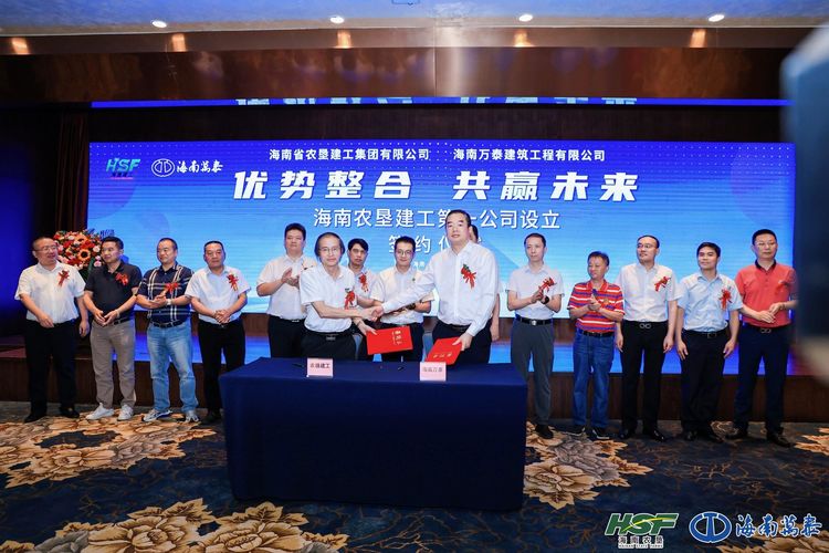 为致力于加大建筑产业创新孵化,推进建筑业转型升级,高质量高标准助力海南自贸港建设,2023年9月12日,海南万泰建筑工程有限公司与海南省农垦建工集团有限公司正式达成合作共识,合资设立“海南农垦建工第一公司”,双方签约仪式在??谟龉菰猜傩?,预示着全新的“农垦建工一号”在海南自贸港将扬帆起航。