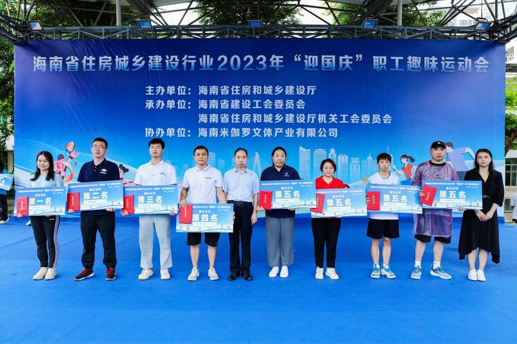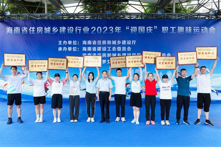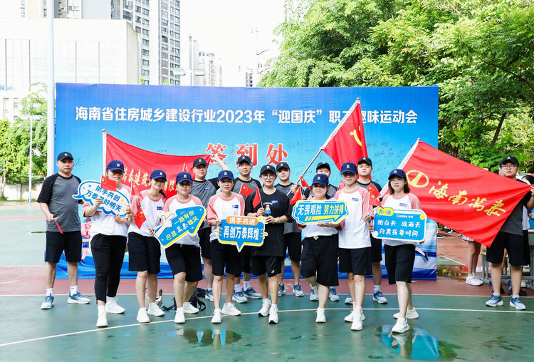 为推动全民健身事业高质量发展,丰富职工文体生活,增强职工体质,提升企业的团结向心力、凝聚力,2023年9月16日,海南万泰建筑工程有限公司党支部、工会参加了由省住建厅举办的海南省住房城乡建设行业2023年“迎国庆”职工趣味运动会,海南省农林水利交通建设工会常务副主席吴清新、省建设工会常务副主席刘志伟、省住建厅行业党委专职副书记李述朝等领导参加本次活动,来自省住建厅机关、直属单位及建设工会各基层工会的36支队伍、500余名队员投身赛场、一展风采。海南万泰代表队共派出1名领队、17名参赛选手参与这场体育盛宴。