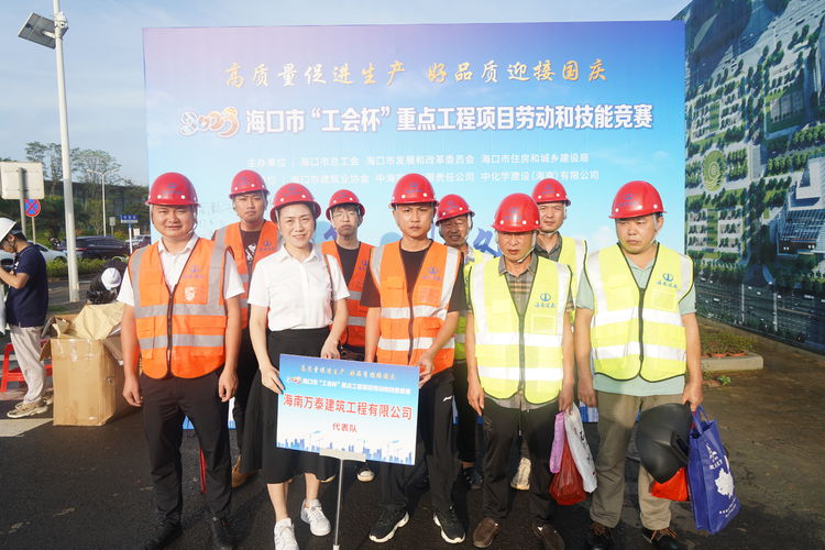 为进一步弘扬劳模工匠精神和发挥职工先进示范带头作用,推动企业高质量发展 ,9月28日上午,由??谑凶芄せ帷⒑?谑蟹⒄垢母镂被?、??谑凶》亢统窍缃ㄉ杈种靼欤?谑薪ㄖ敌?、中海实业有限责任公司、中化学建设(海南)有限公司承办的2023海口市劳动技能竞赛-建筑行业技能比赛,在由中化学建设(海南)有限公司承建的中国海油深海能源开发总指挥部基地项目01地块项目部隆重举行。来自海南万泰建筑工程有限公司、中化学建设(海南)有限公司、中国建筑第五工程局有限公司等9家海南省建筑业企业,共计110名参赛选手同台竞技,互相角逐,赛出水平,展现风采。海南万泰公司总经理颜利、党支部书记曹珊珊及总经办、工程部、综合部有关人员参加本次活动。