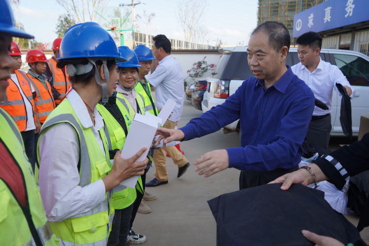 刘志伟副主席在讲话中首先对节前仍奋战在工地一线的工友们表示感谢,他强调,工会组织要始终把企业职工的生活冷暖放在心上,想职工所想,急职工所急,尽最大努力为职工办实事、解难事、做好事,用情用心做好保障工作,让更多职工感受到工会组织的温暖和关爱。同时,他也号召广大工友们要持续发扬工人阶级的优良传统,立足岗位、努力工作、积极参加劳动竞赛,弘扬劳模精神、劳动精神、工匠精神,为企业发展和自贸港建设再建新功。现场的工友们对上级组织的关爱和关怀表示衷心的感谢,纷纷表示将会继续立足岗位,做好本职工作,努力推动项目建设。