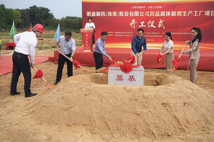 伴随着轰隆隆的礼炮声,各位领导、嘉宾一同为项目开工培土奠基,预祝明鑫制药琼海药品固体制剂生产工厂项目开工大吉,一帆风顺。