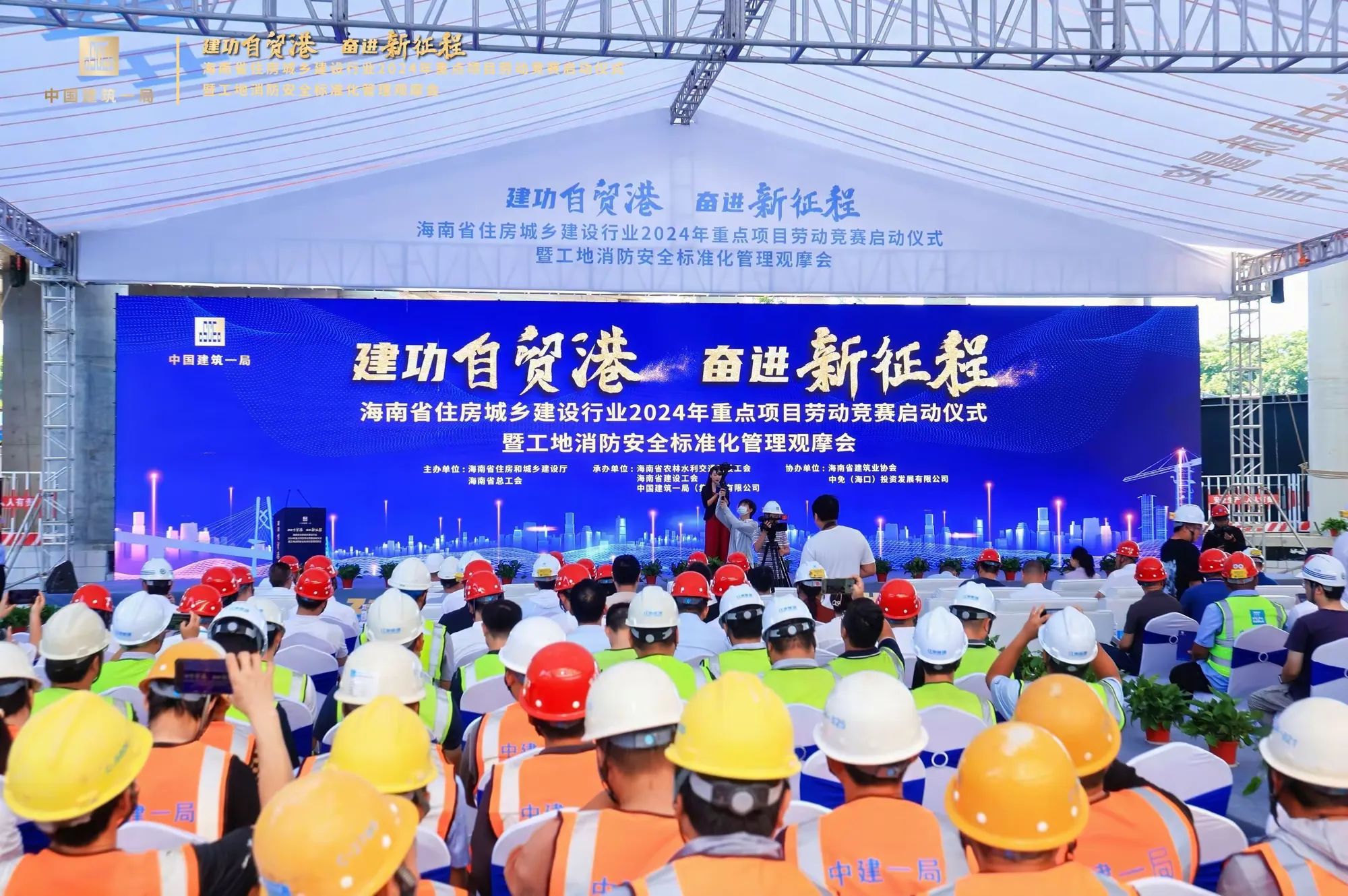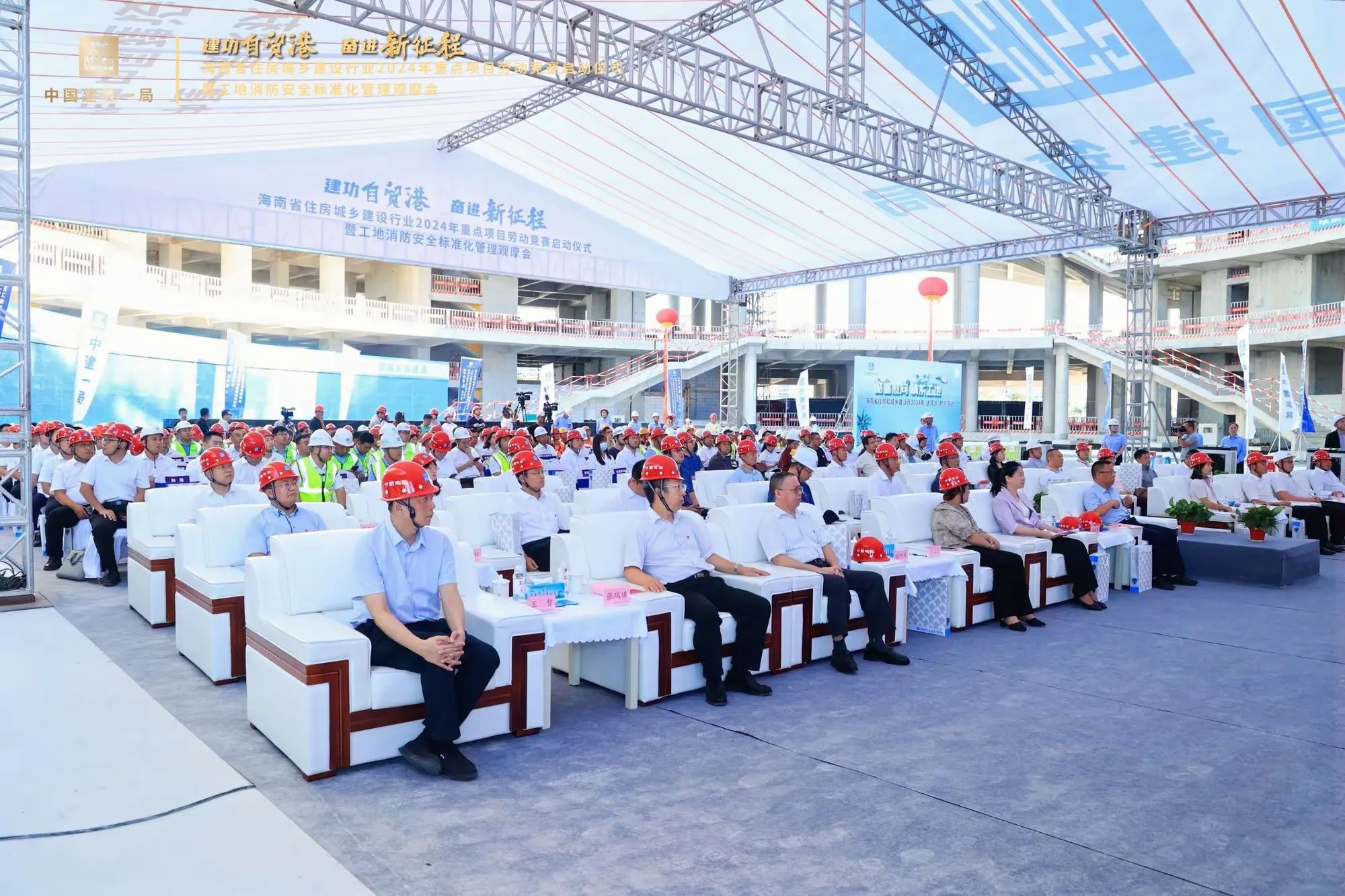 为深入学习贯彻习近平新时代中国特色社会主义思想和党的二十大精神,贯彻落实习近平总书记关于工人阶级和工会工作的重要论述,大力弘扬劳模精神、劳动精神、工匠精神。2024年7月10日,由海南省住房和城乡建设厅、海南省总工会主办,海南省农林水利交通建设工会、海南省建设工会、中建一局承办的“建功自贸港、奋进新征程”海南省住房城乡建设行业2024年重点项目劳动竞赛启动仪式暨工地消防安全标准化管理观摩会在??诠拭馑俺窍钅抗さ仄舳?,省住建厅党组成员、副厅长刘联伟,省总工会党组成员、副主席陈桦,省住建厅总工程师孙淑华等相关单位领导出席活动。海南万泰公司党支部、工会参加了本次活动。