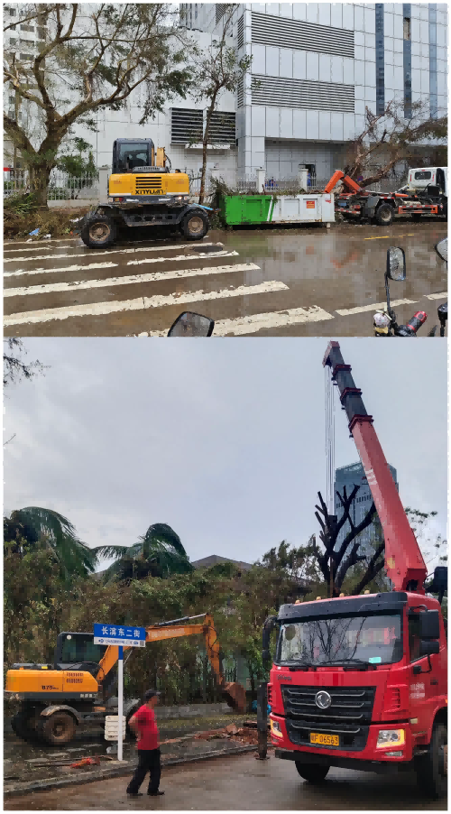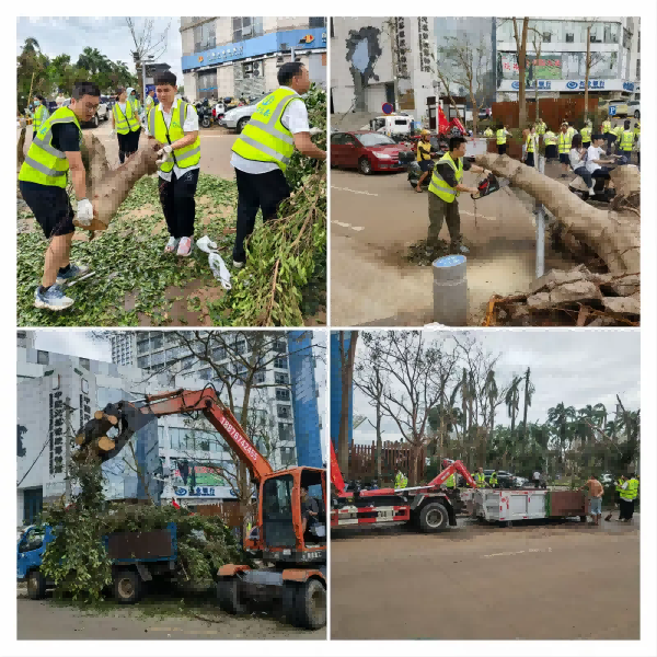 9月9日下午,海南万泰公司组织近40名由党员、职工组成的志愿服务队伍,调配轮式挖机2台、运输车5辆、抓机1台以及油锯、扫把、铁锹等一批小型工具分批前往国兴大道、龙华区金海路开展路障清理志愿服务活动。经过一下午的努力,所负责区域道路已顺利通畅。