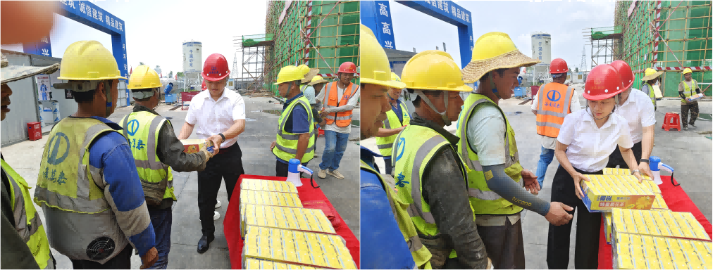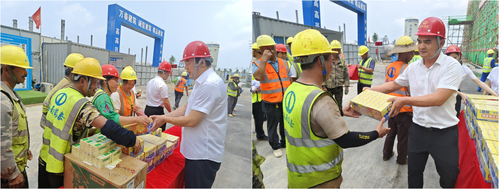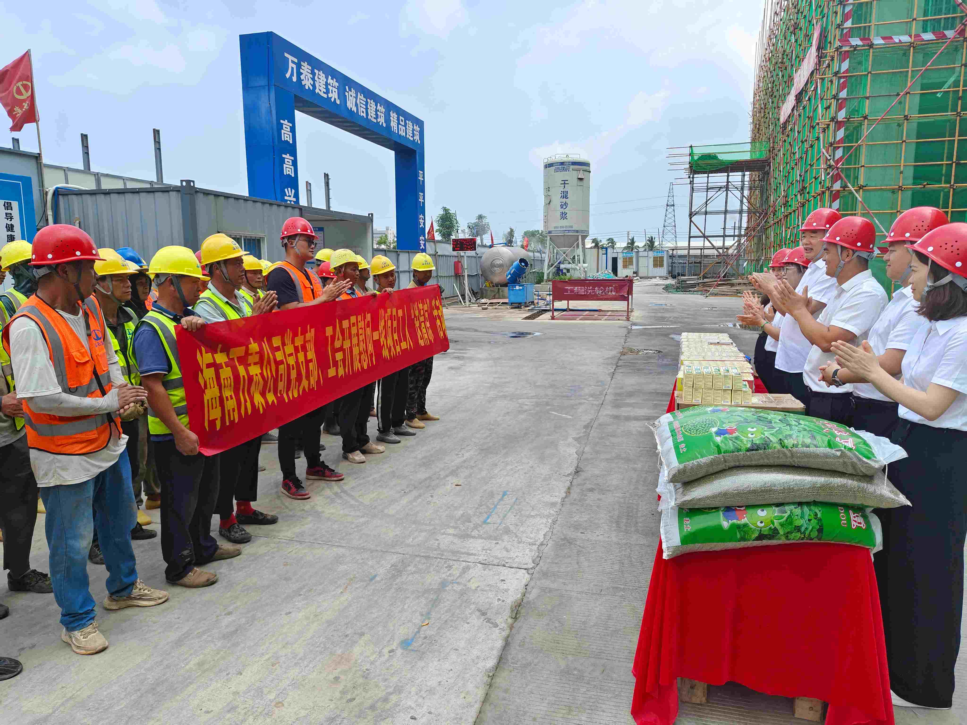 炎炎夏日送清凉,点点滴滴暖人心。4月27日、30日,为表达对坚守在工作岗位的项目一线工友的关怀与敬意,在五一国际劳动节即将到来之际,海南万泰公司总经理颜利带队赴海口江东新区国际消费精品产业港等项目现场,开展了“送清凉,暖人心”慰问活动,为广大一线工友们送去节日祝福和清凉物资。公司党支部、工会及相关部门负责人参加了本次活动。