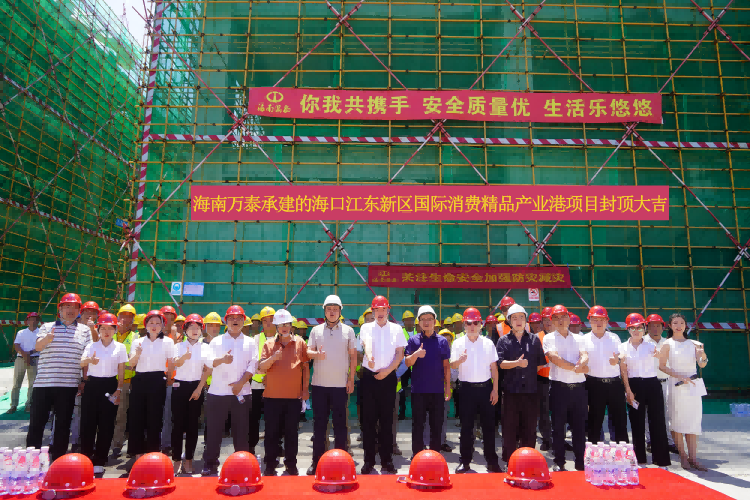 5月19日,海口江东新区国际消费精品产业港项目主体结构封顶仪式在项目现场顺利举办。海南万泰公司总经理颜利、有关部门负责人以及项目部人员,项目各参建单位代表出席了封顶仪式。