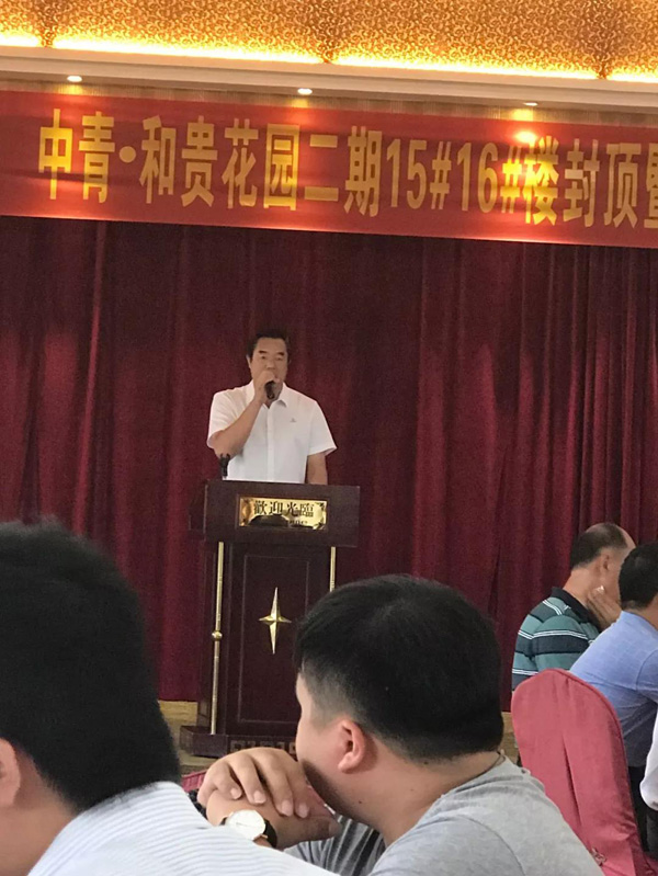 7月1日,中青?和贵花园二期15#、16#楼封顶暨开盘及三期12#楼开工庆典仪式在屯昌县圆满举行。海南省政协委员、中青城市建设(海南)有限公司董事长徐元芳先生;海南和贵投资有限公司总经理王红心先生;海南录德房地产股份有限公司董事长邱廷录先生;海南华磊建筑设计咨询有限公司项目负责人陈金龙先生;海南布施工程项目管理有限公司董事长黄娇女士;海南万泰建筑工程有限公司常务副总颜利先生;海南万泰建筑工程有限公司和贵花园项目部总经理郭建章先生等领导,业主单位、承建单位和监理单位工作人员代表参加本次活动。
