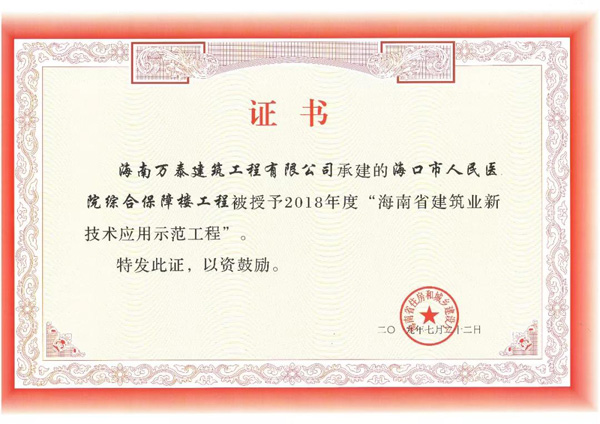 近期,海南省住房和城乡建设厅下发了《关于公布2018年度海南省建筑业新技术应用示范工程的通知》,由我司承建的??谑腥嗣褚皆鹤酆媳U下ハ钅?,获评“2018年度海南省建筑业新技术应用示范工程”。
