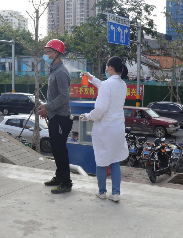 对一线建设者逐一进行消毒