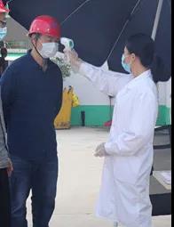 为一线建设者测量体温