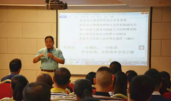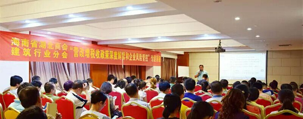 2016年4月16日,海南省湖北商会、海南省湖北商会建筑行业分会,联合尤尼泰(海南)税务师事务所在??谙憬氯蚀缶频旯餐侔炝恕坝脑鏊笆照呱疃冉舛梁推笠捣缦展芸亍弊ㄌ饨沧:D贤蛱┙ㄖこ逃邢薰咀芫?、海南省湖北商会建筑行业分会秘书长张小龙参加并主持了本期讲座。
