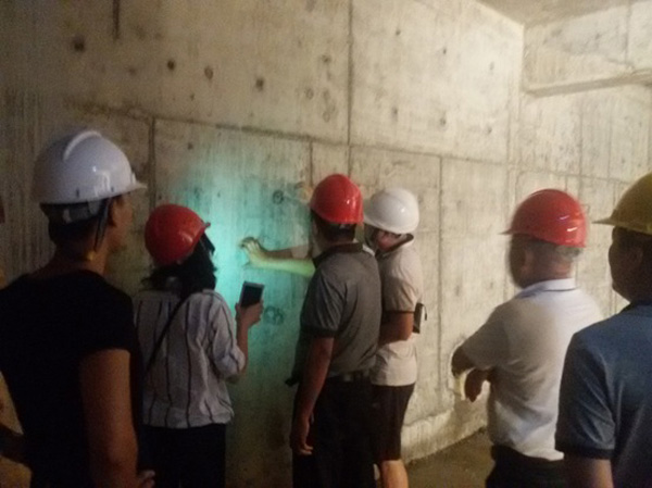 此次“省优质结构”第一阶段评审是检查地基基础和地下室结构。评定内容包括工程施工过程的管理工作质量、建材产品质量、施工操作质量、工程实体质量和环境质量。此次评审会议分三个步骤进行。首先专家组对资料进行检查,然后在万泰公司工程部及项目部人员的陪同下,检查组各位专家认真细致的查看现场,最后在项目部会议室进行了此次评审的意见反馈和总结。