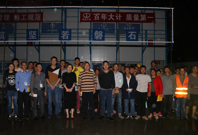 4月14日下午,万泰公司总工程师邹进安、工程部主任秦启武带领工程部、总工办、办公室部分员工到公司琼海在建项目信达•银海御湖工地现场检查工作。项目部管理人员邱总、程总等陪同参加了本次季度质量安全检查。