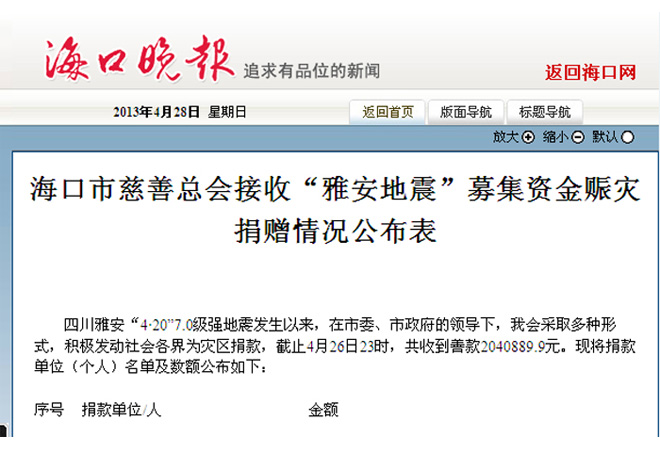“雅安地震”募集资金赈灾捐赠