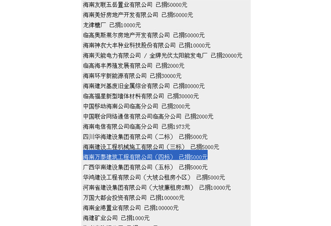 2013年临高县“爱心助学·阳光行动”企业捐款