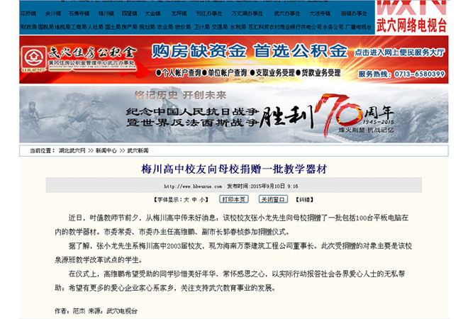 梅川高中校友张小龙向母校捐赠一批教学器材